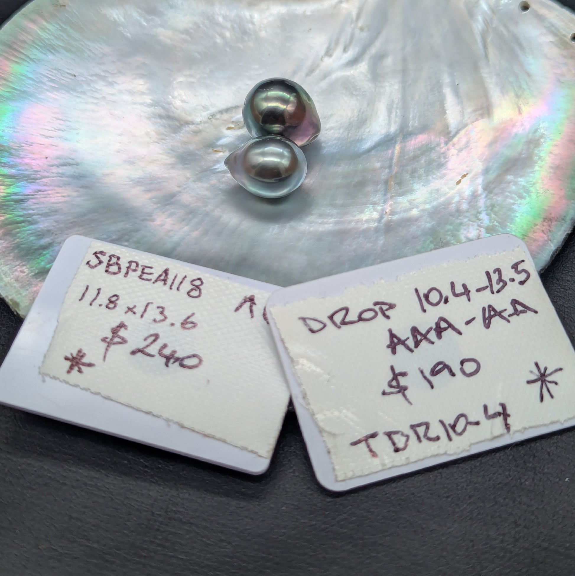 Sizes: Silver pearl 10.4 x 13.5 mm - Peacock 11.8 x 13.5 mm