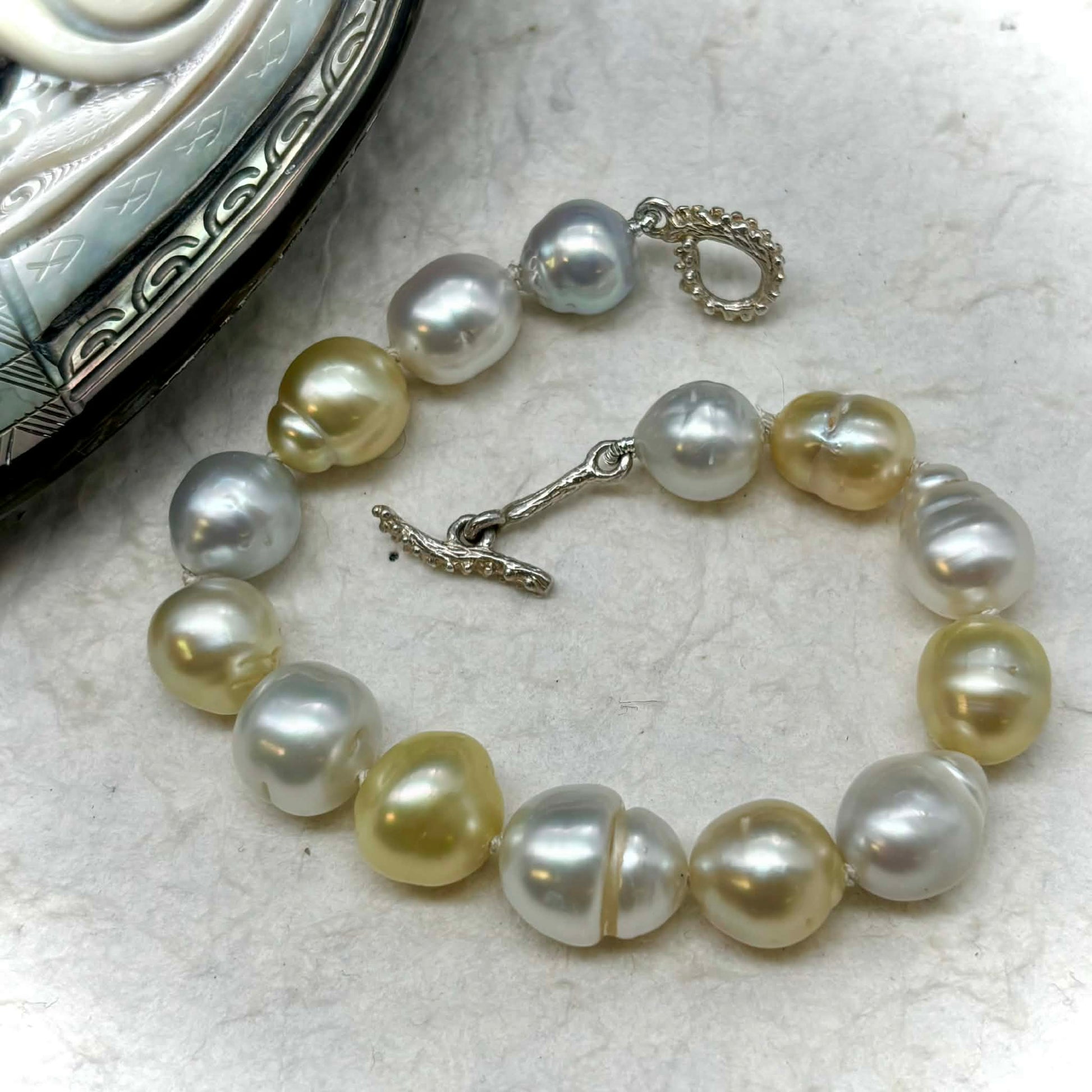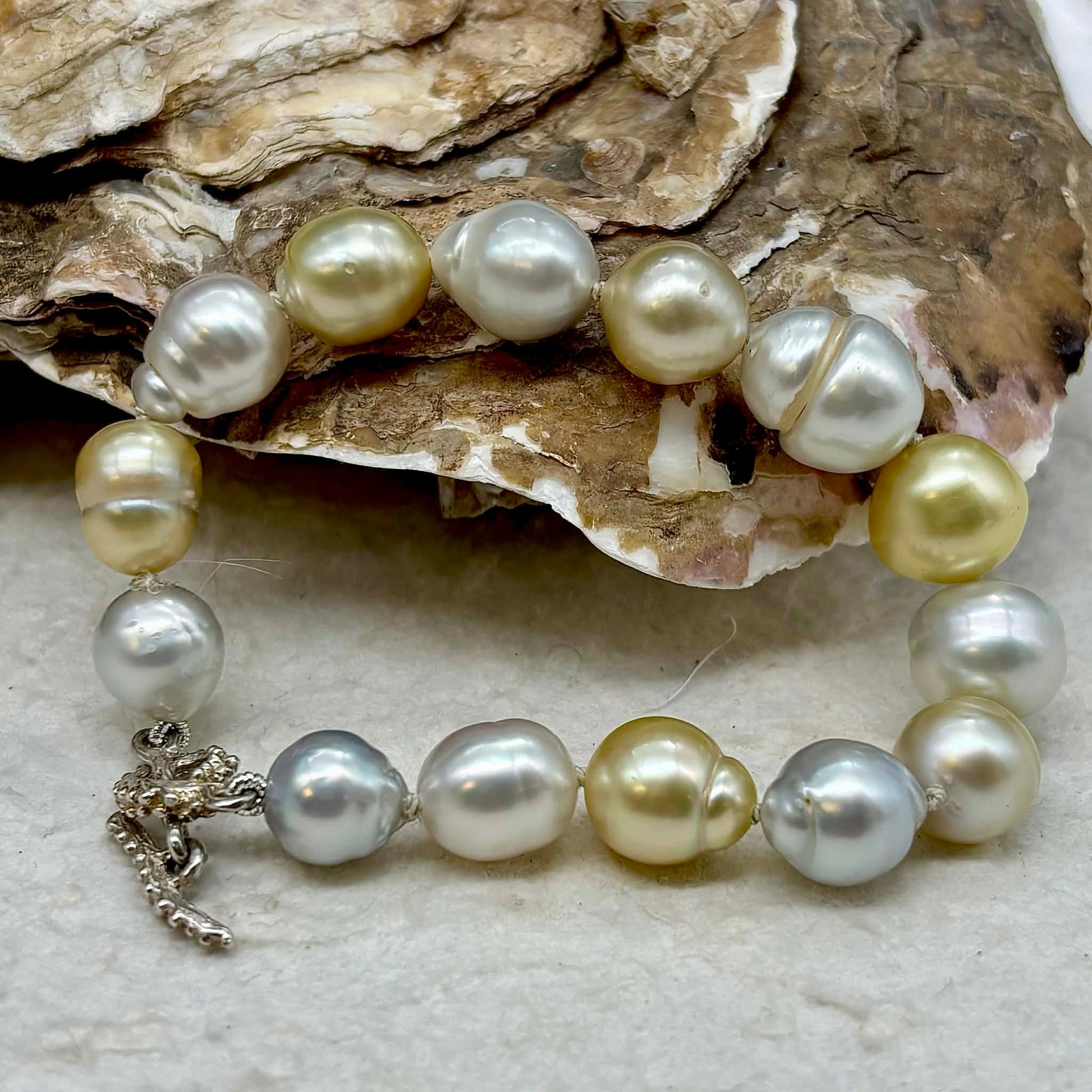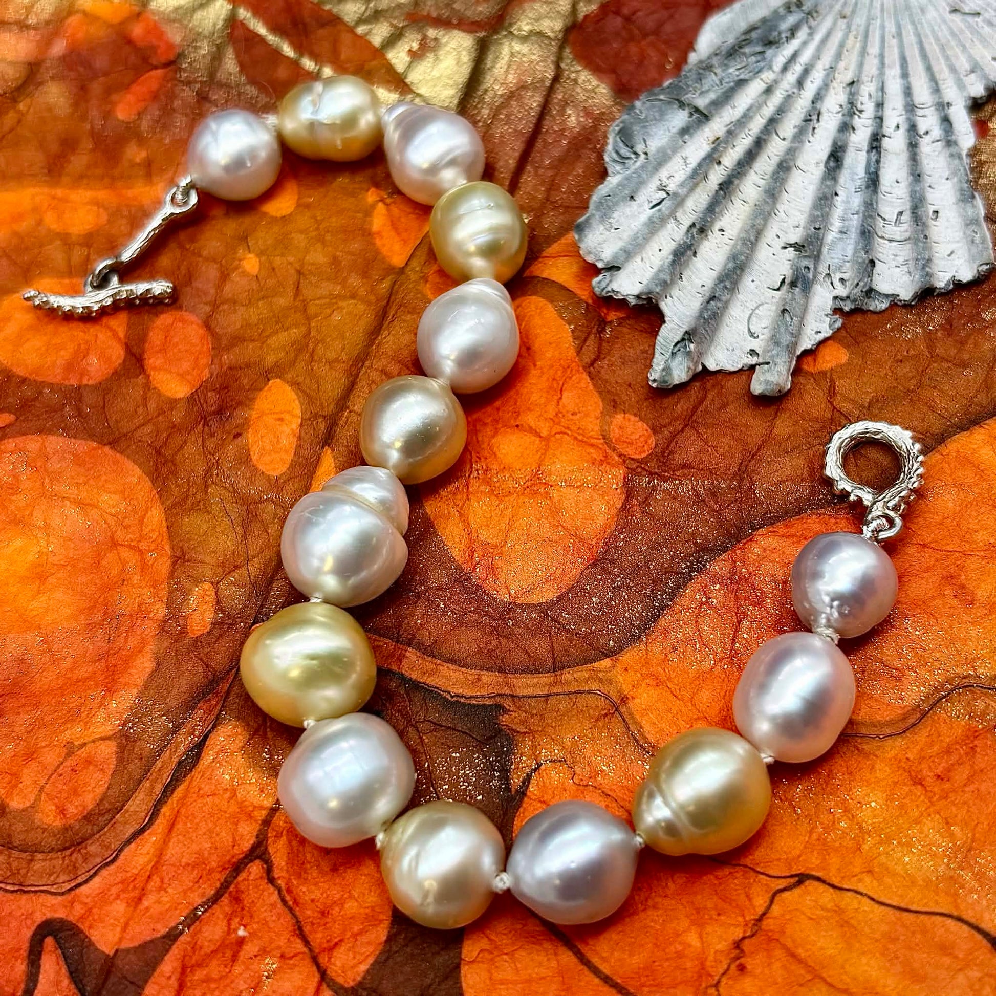 The Oro Wrist let is your ticket to understated luxury—naturally golden South Sea pearls paired with a handcrafted contemporary silver tenta-toggle that keeps everything exactly where it belongs. Playful yet refined, this is the kind of piece that makes people ask where you found it. Because sometimes the best accessories are the ones that feel like they were made just for you.