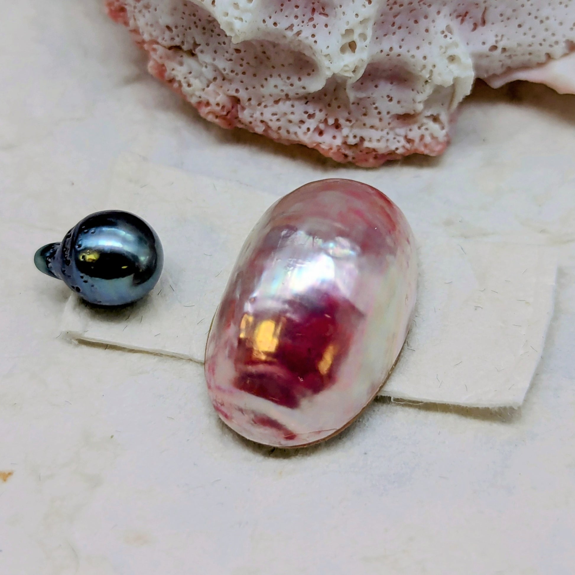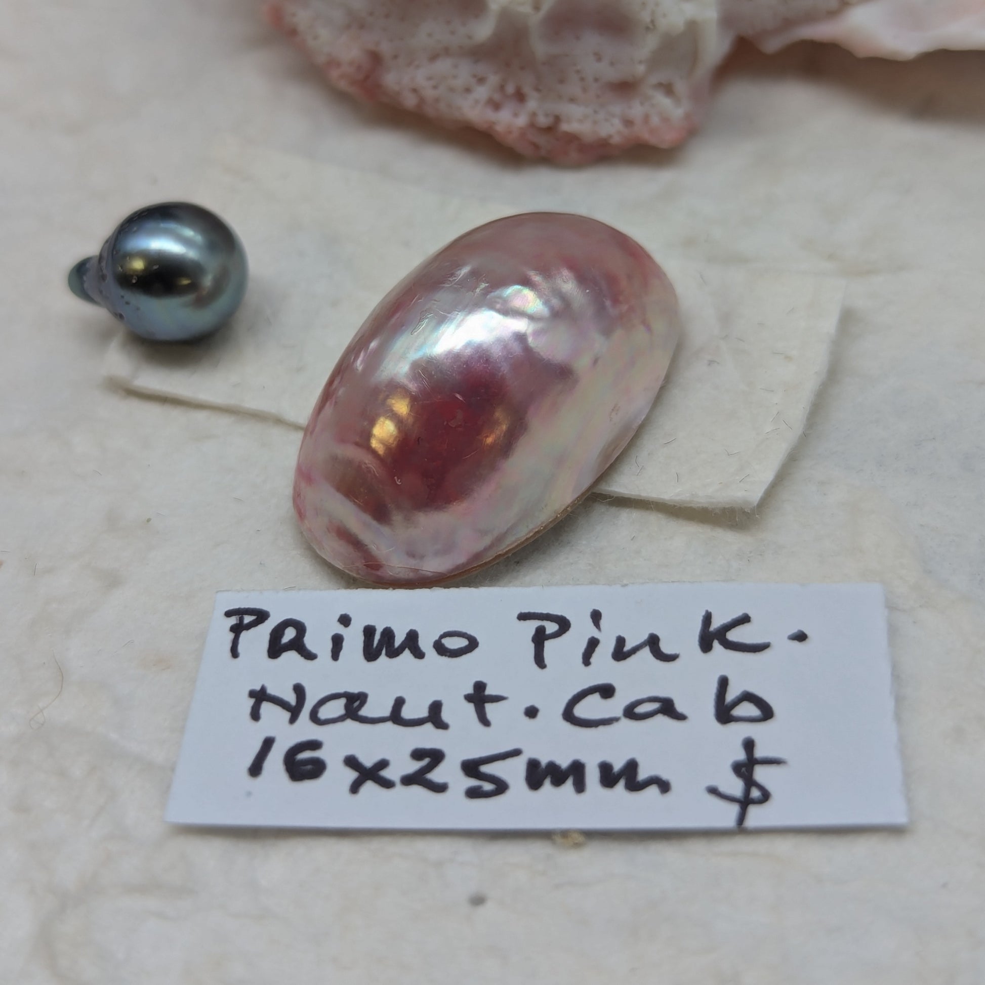 The Pink Lady is a radiant 16.5mm vintage Nautilus cabochon, sourced from the ocean's most prized shells. This organic beauty showcases the signature pink tones that make vintage Nautilus legendary among artisans and collectors alike. Perfectly suited for statement brooches or pendant designs that celebrate nature's craftsmanship, each stone carries the timeless character only vintage pieces possess