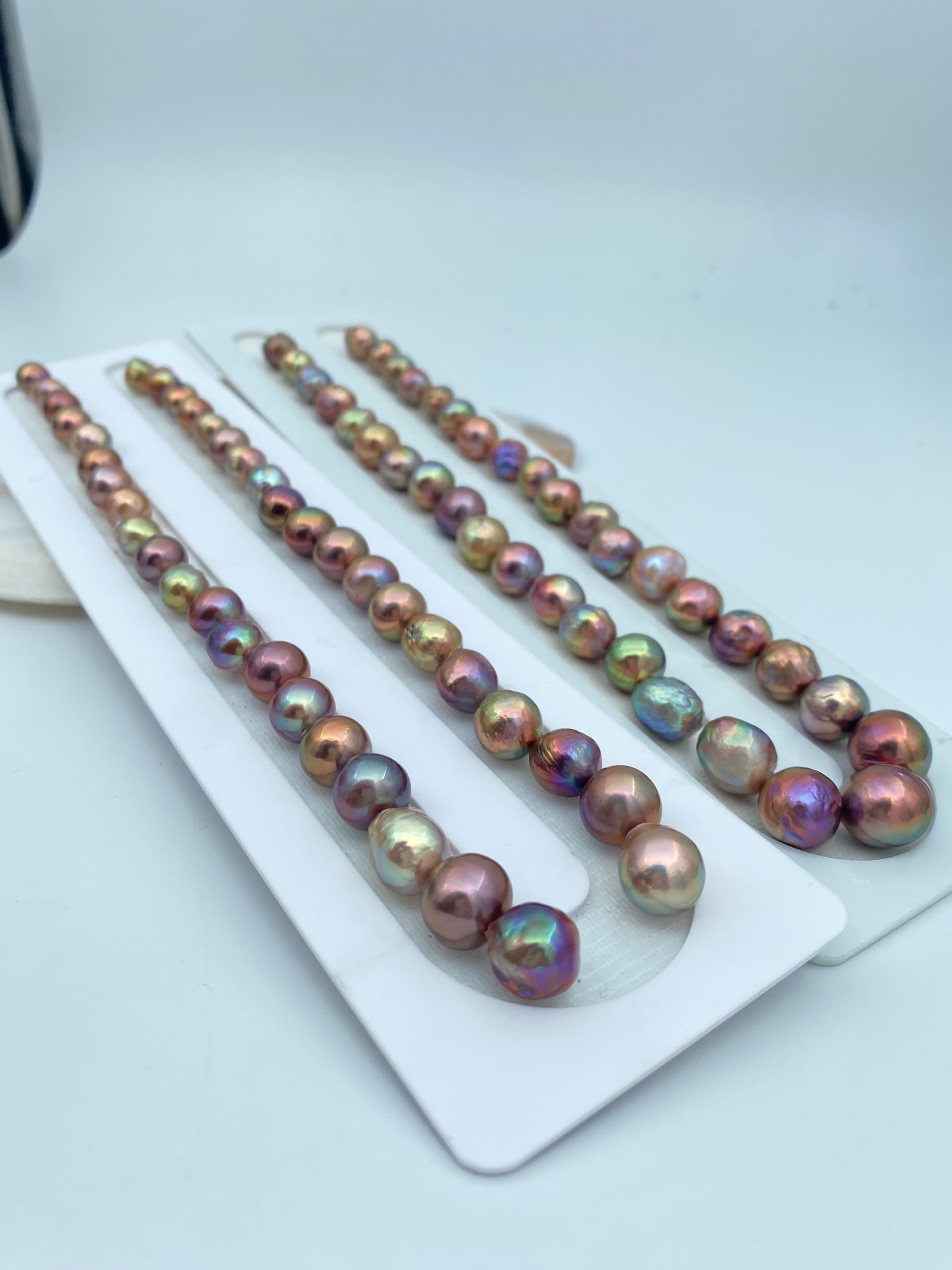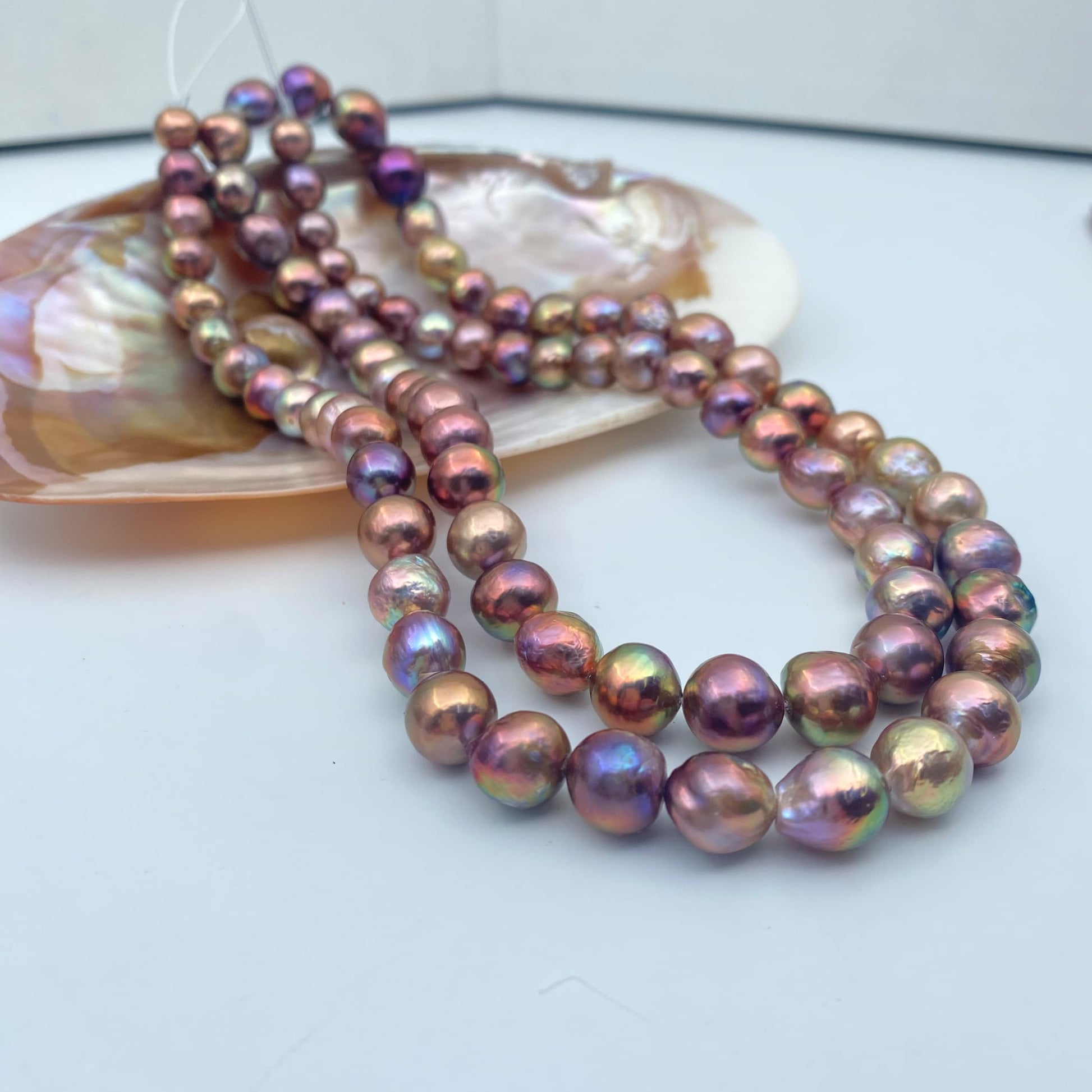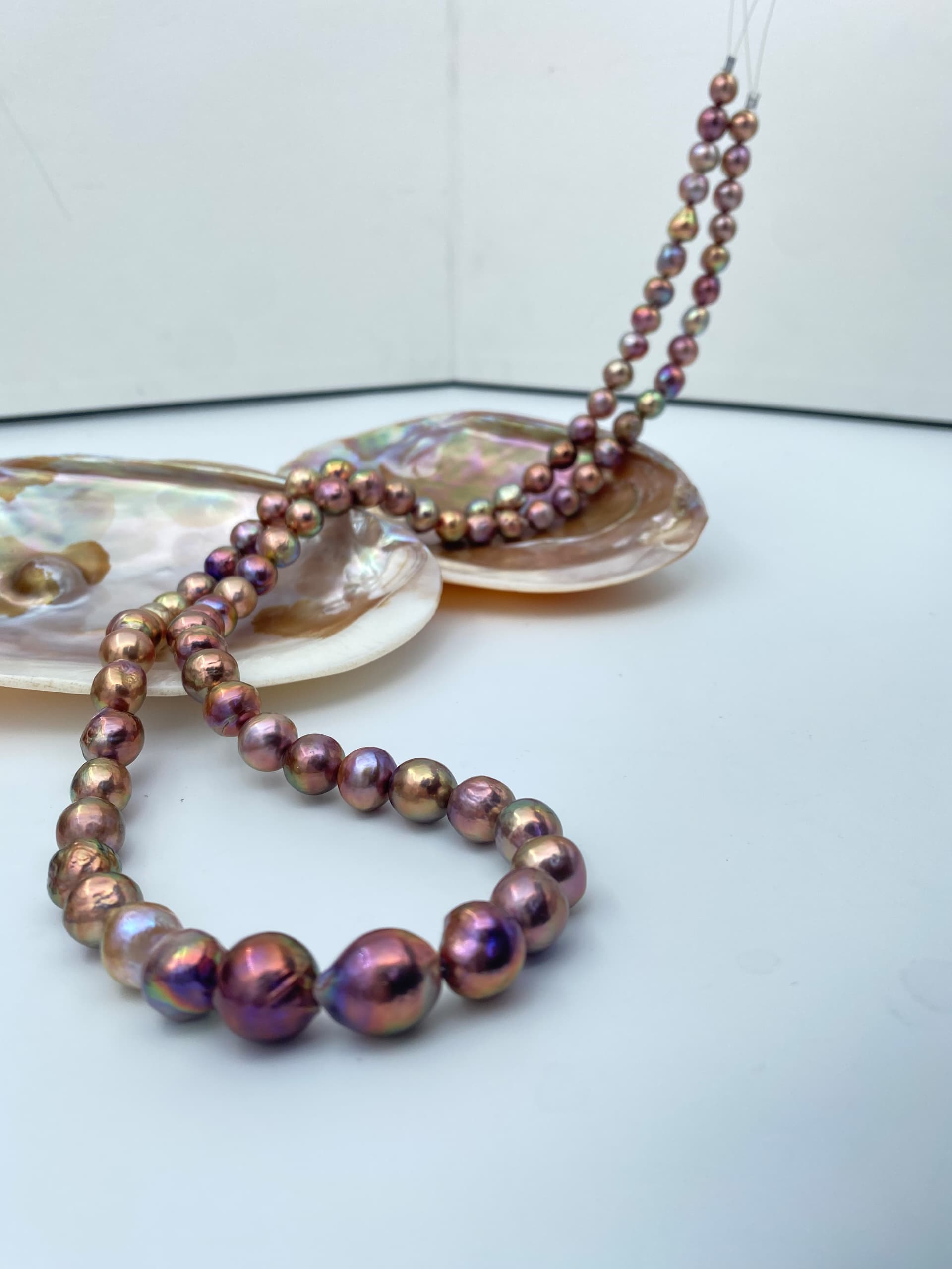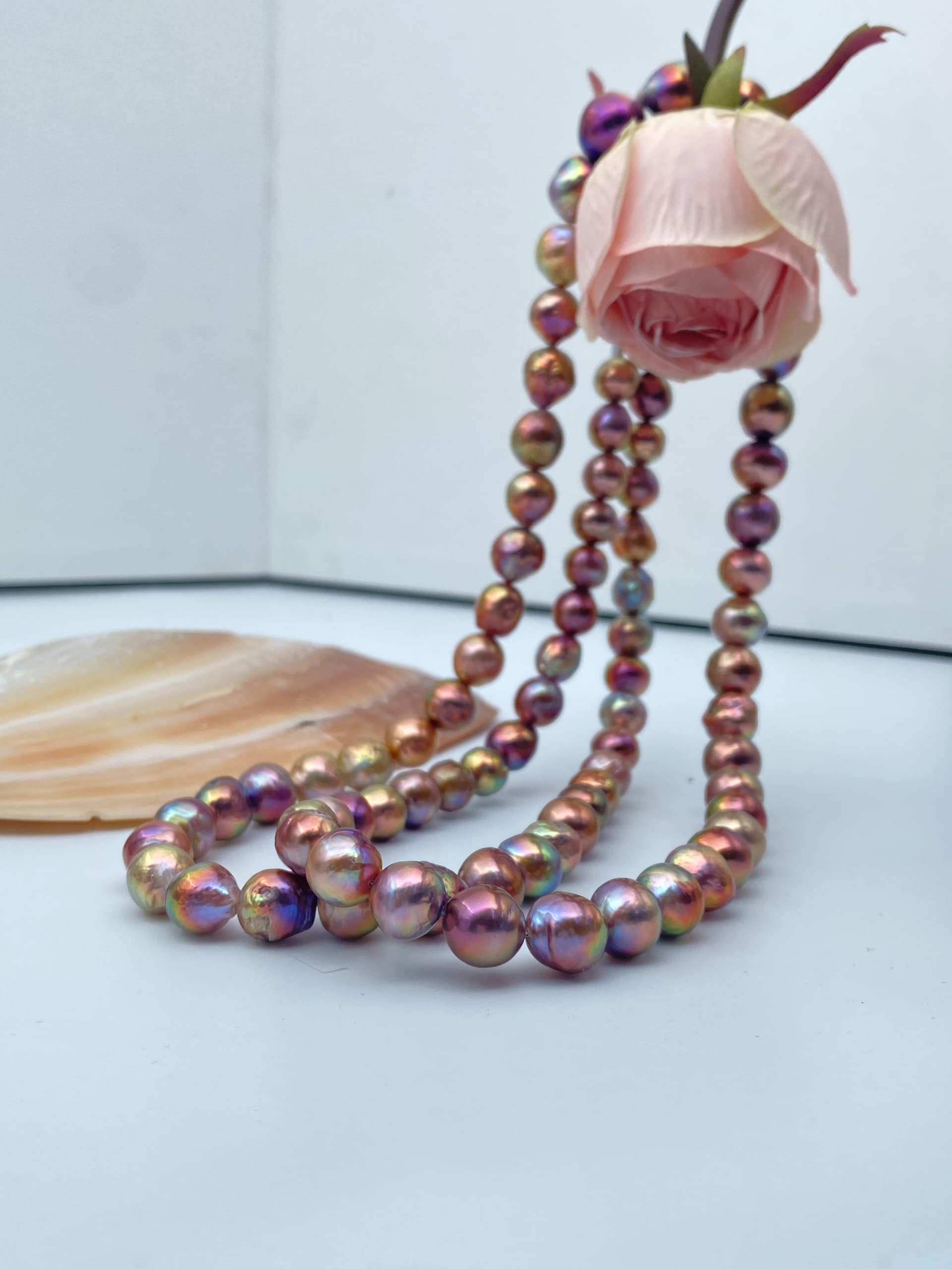 This commanding strand showcases hand-selected Edison pearls in a fearless fusion of purple, gold, and copper—a color combination that refuses to whisper. The Dragon Multi Tone is engineered for those who view jewelry as a declaration, not an afterthought. Unconventional, unapologetic, and impossible to ignore, it's the piece for rebels who demand their accessories match their attitude.
