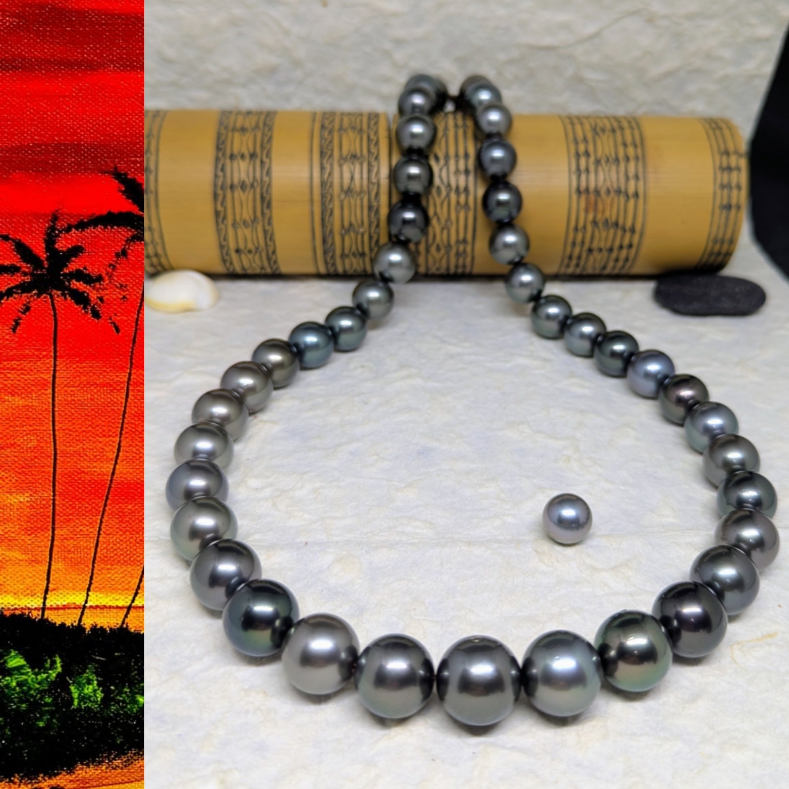 Curated from the ocean's depths, this audacious 12–15 mm strand showcases rare Tahitian pearls meticulously assembled for an unbroken visual symphony. Each pearl was hand-selected and positioned to command attention—a statement piece that refuses subtlety. Island XL Lux delivers the drama and prestige of genuine large-format pearls, sourced directly and composed with uncompromising precision.