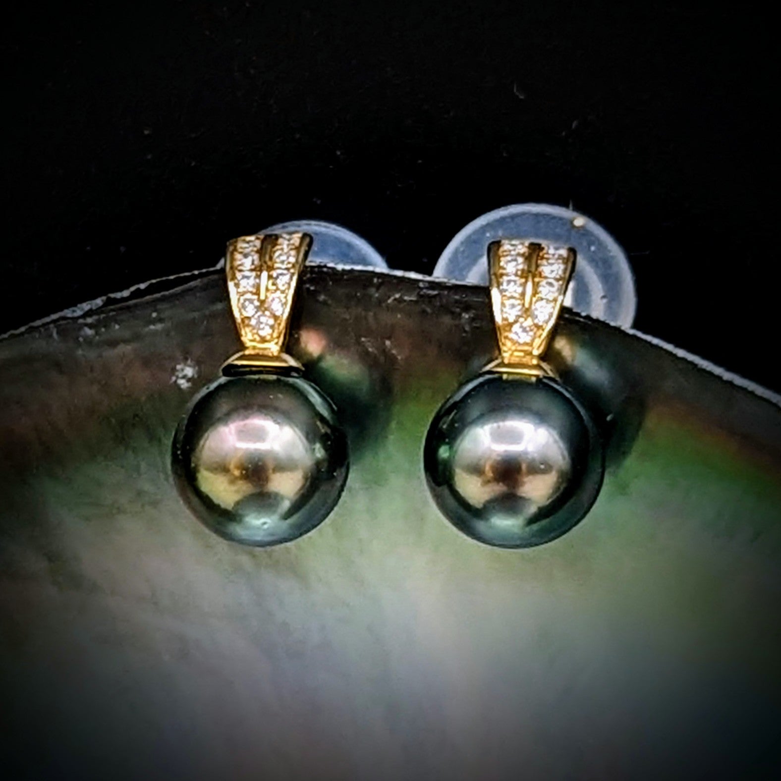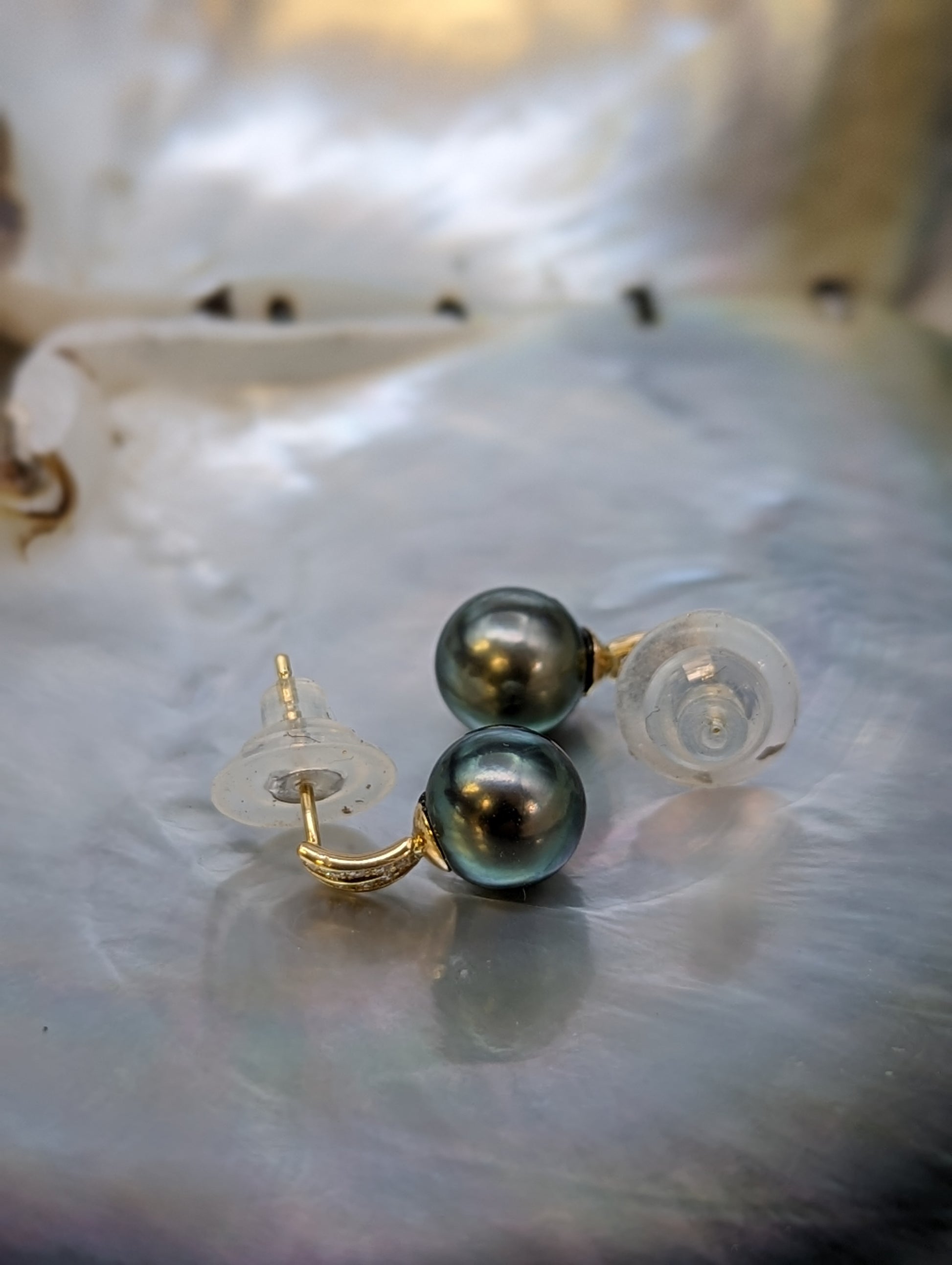 Fun, glimmering tahitian pearl twins set on artsy solid gold fixtures- made to fit with gold and silicon backings for every occasion.