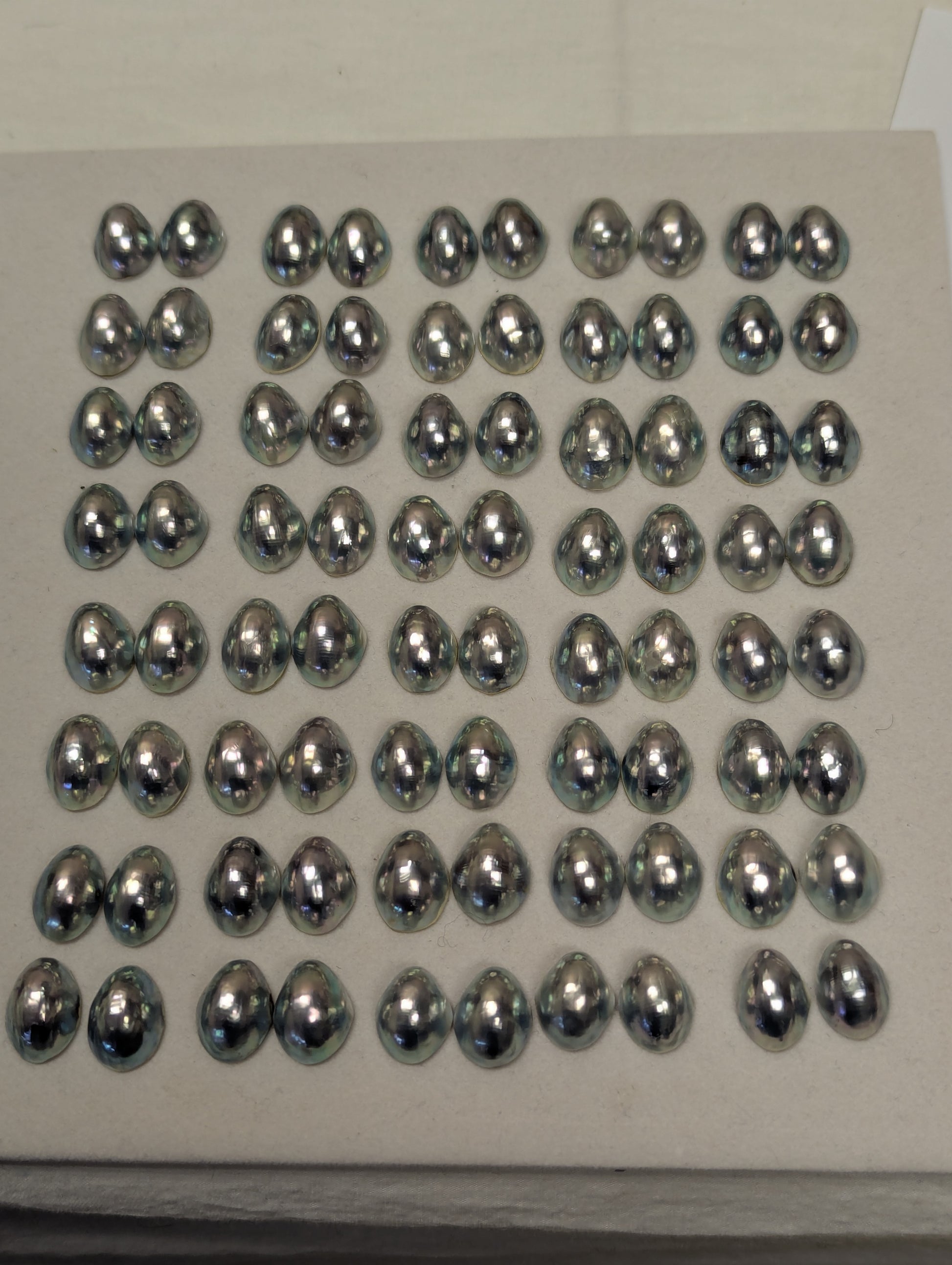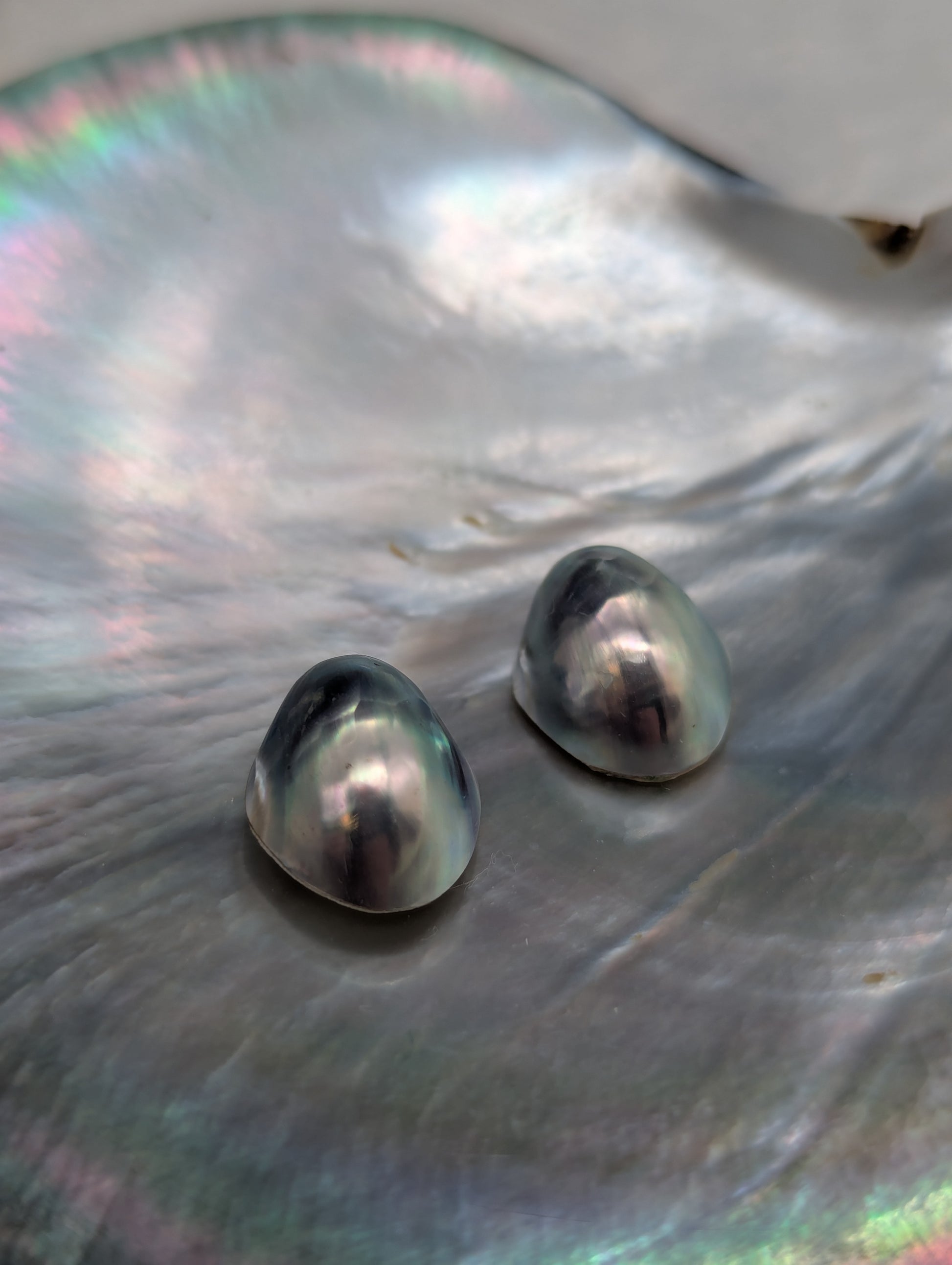 Matched pairs of premium vintage Nautilus cabochons featuring the coveted steel-blue and silver-grey ombre. Each pair is carefully selected for color consistency and size matching, perfect for earrings and symmetrical jewelry designs.