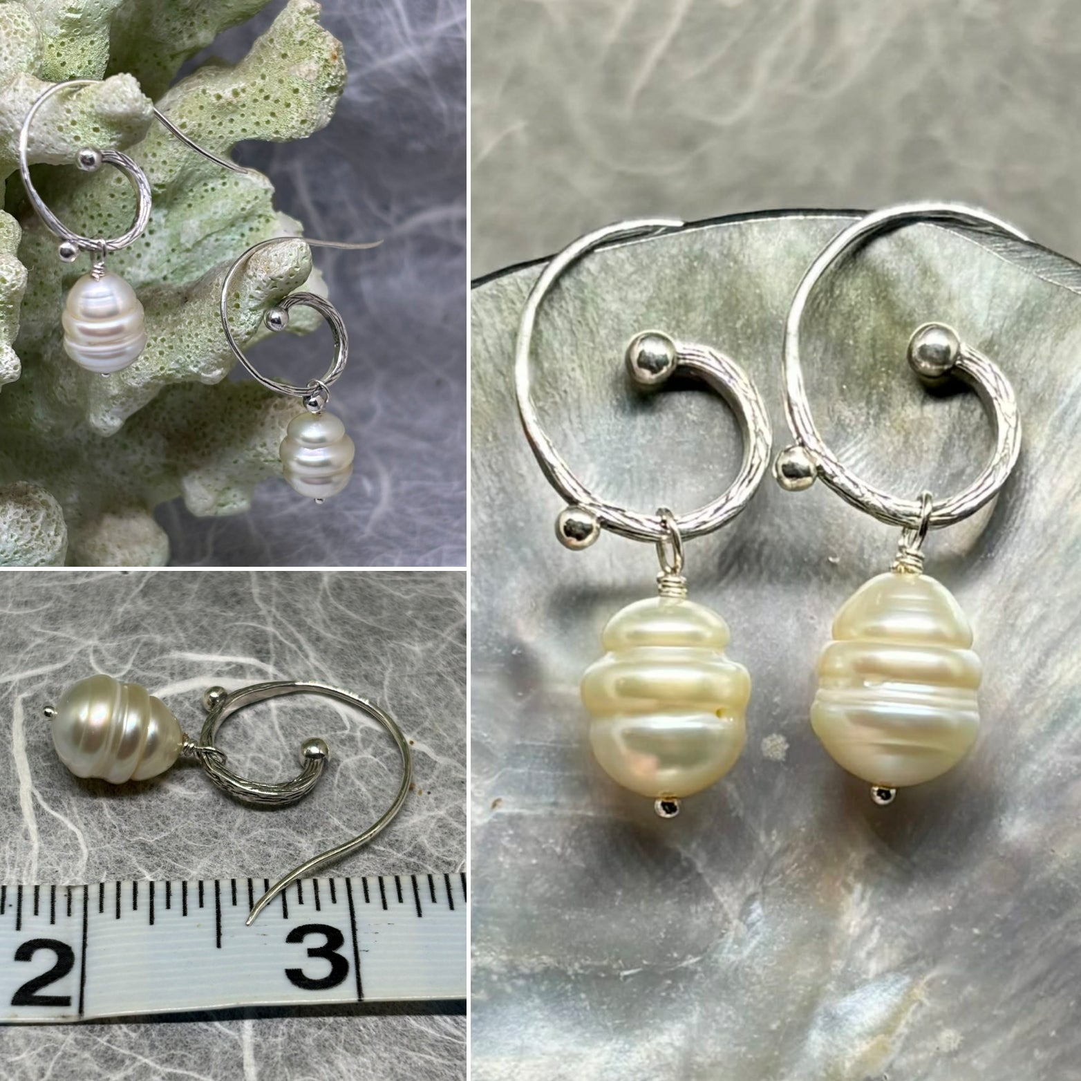 Wire-wrapped South Sea pearls in warm champagne tones float from textured silver hooks, catching light like tiny lanterns. The bubble-textured silver accents add a playful contrast that keeps these earrings from feeling too serious, while the pearls themselves deliver that mesmerizing glow that makes people ask where you found them. Sophisticated enough for special occasions, approachable enough for everyday magic.