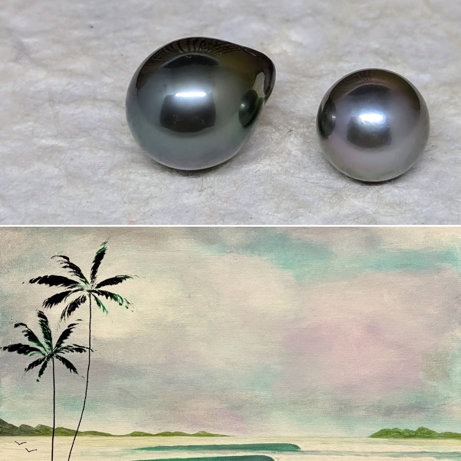 The ocean depths hold a remarkable treasure in the form of these exquisite Tahitian drop pearl, adorned with a vibrant light peacock robe. This stunning jewelry piece is truly one of a kind.