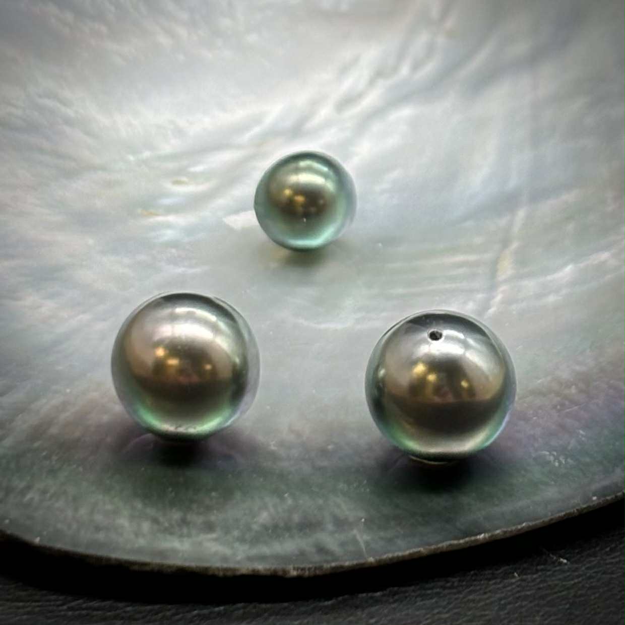 Discover the charm of these light greenbround pearls with a peaccok twist, the perfect oceanic inspiration for the skilled jeweler.
