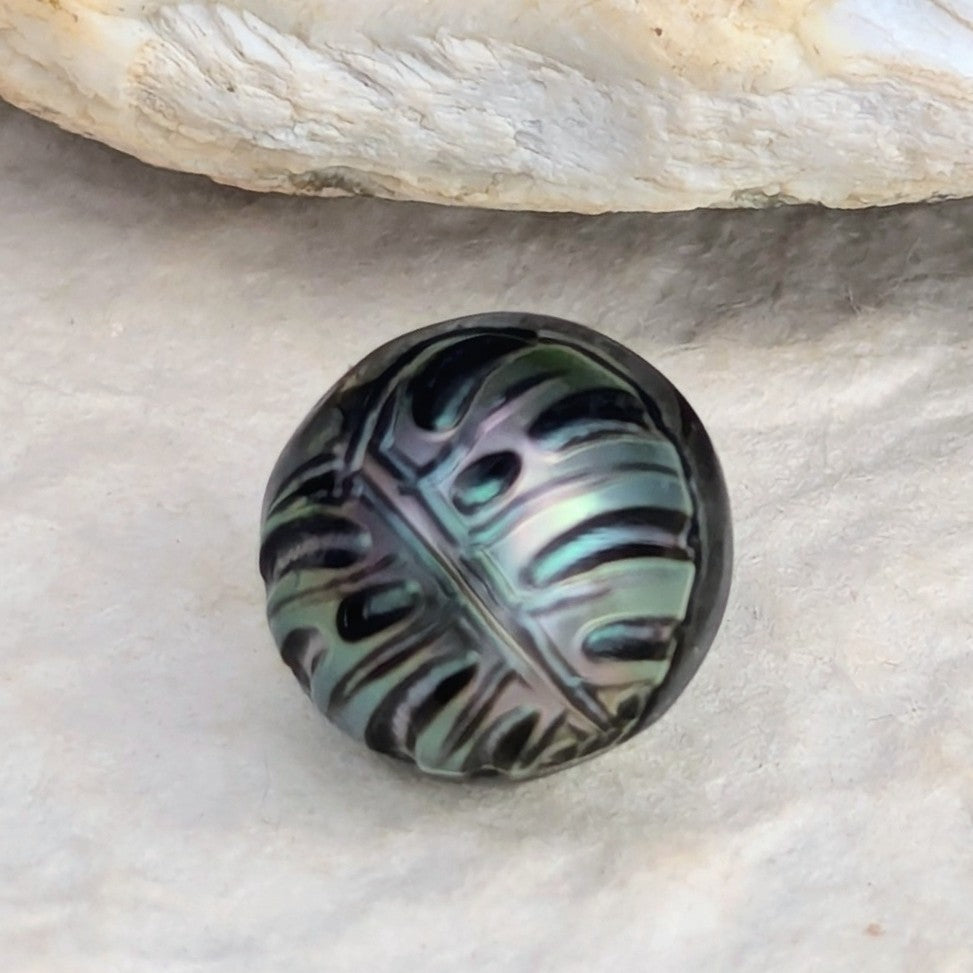Explore the exquisite fusion of ancient tattoo artistry and contemporary design embodied in a single pearl. The Tahitian Jungle features a rare green Tahitian pearl, kissed by subtle peacock hues, a creation only nature can conceive. Elevate your collection with this sophisticated treasure that harmonizes tradition and natural beauty.